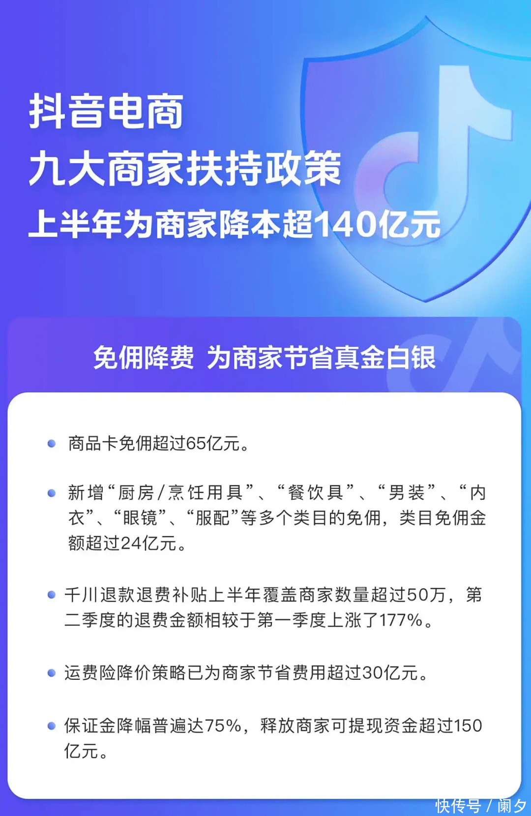 一方面,抖音电商在用实打实的真金白银补贴政策在为商家减负,从它对外公布的数据上看,今年上半年,连同免佣、降运费险、返还推广费、小商家帮扶基金等举措累计为商家节省成本超过140亿元。